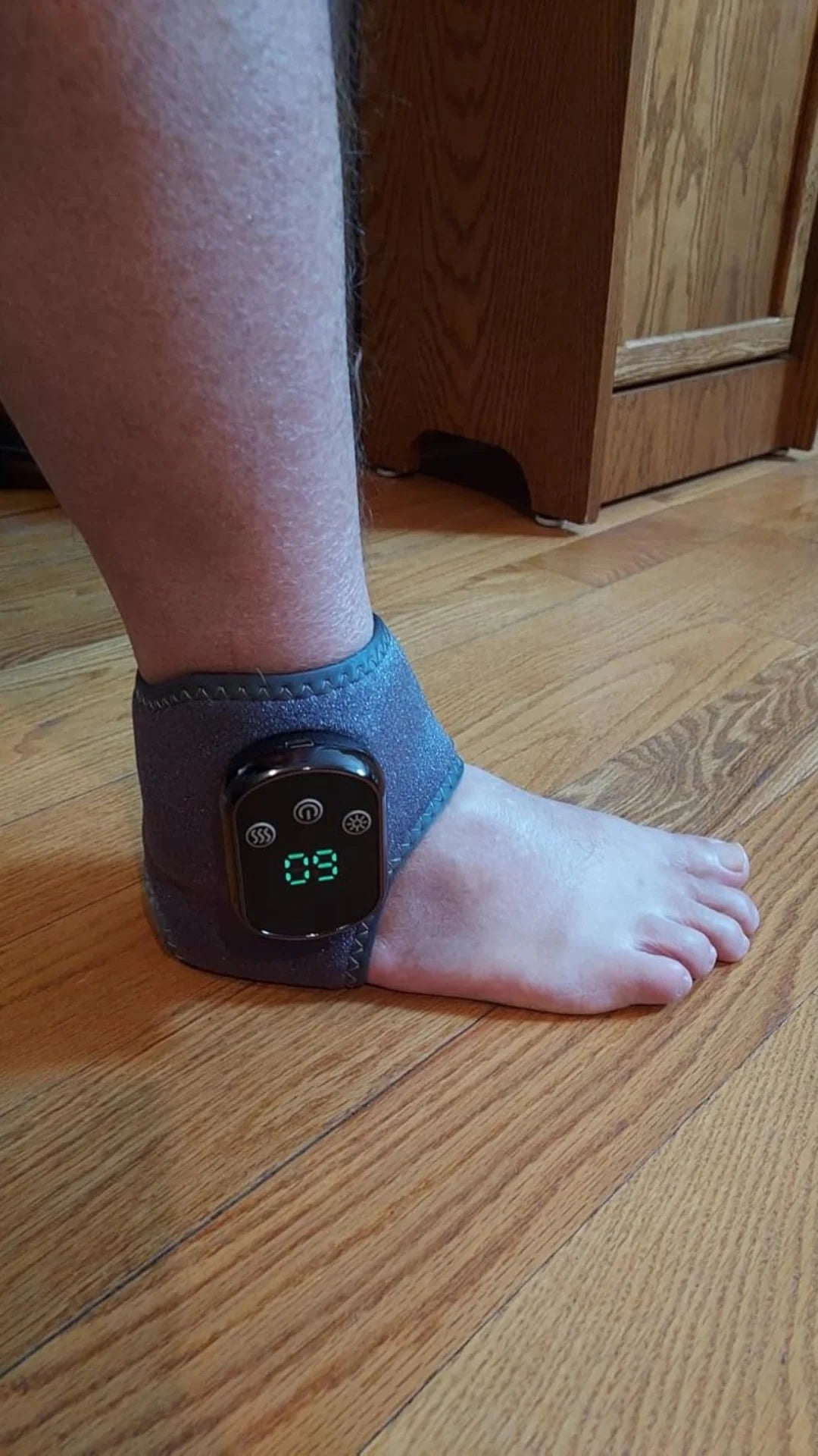 Solo colócala en el tobillo, elige entre sus modos de vibración y de calor, y disfruta del alivio en minutos.