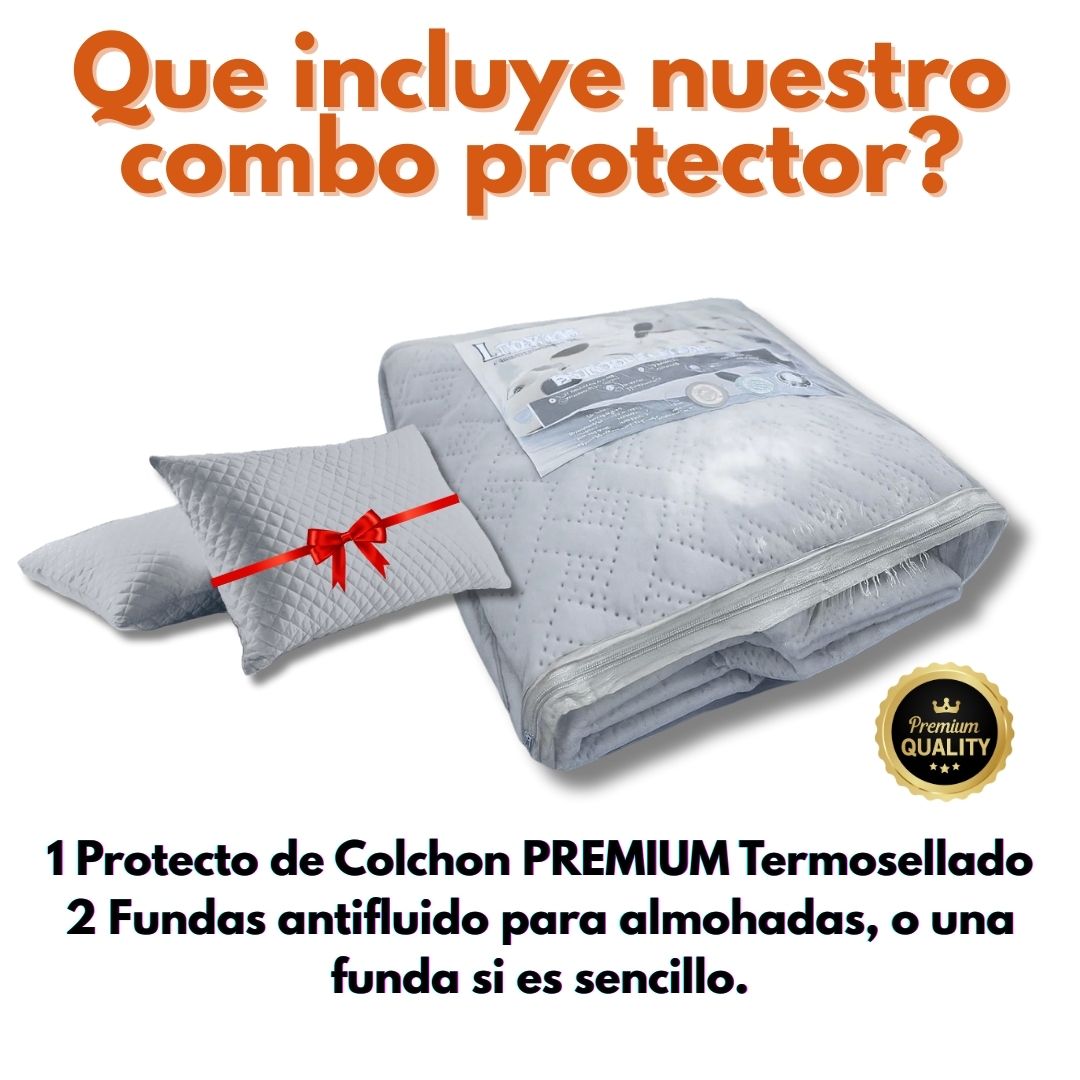 Cada compra incluye el protector acolchado premium + fundas de almohada según el tamaño que elijas: