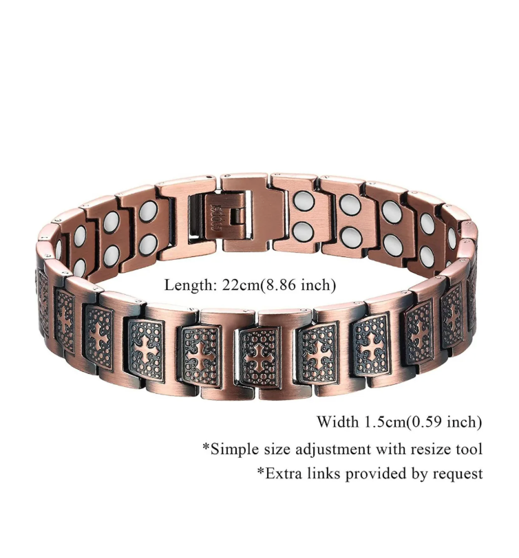 Gracias a su cobre auténtico y potentes imanes naturales para ayudarte a recuperar energía, mejorar la circulación y aliviar tensiones, mientras luce elegante en cualquier ocasión.🙌