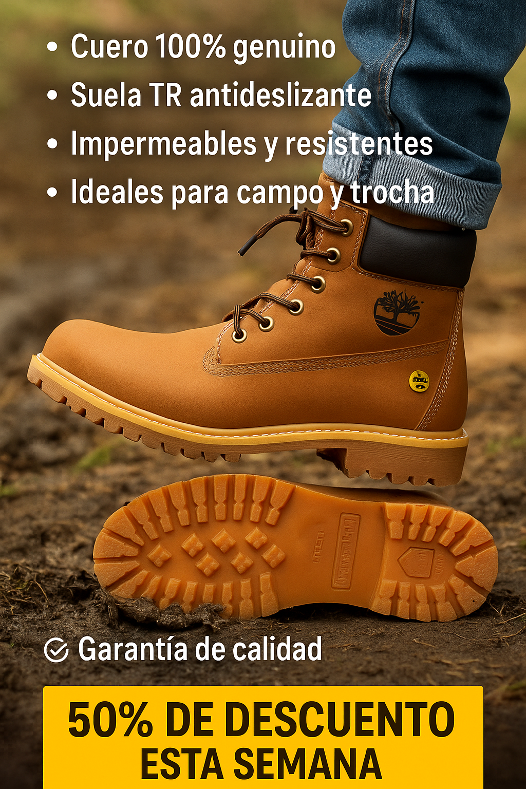 🥾 Cuero 100% genuino